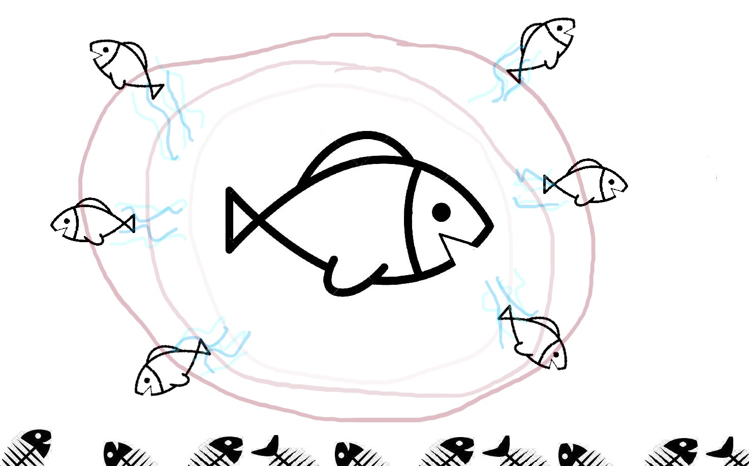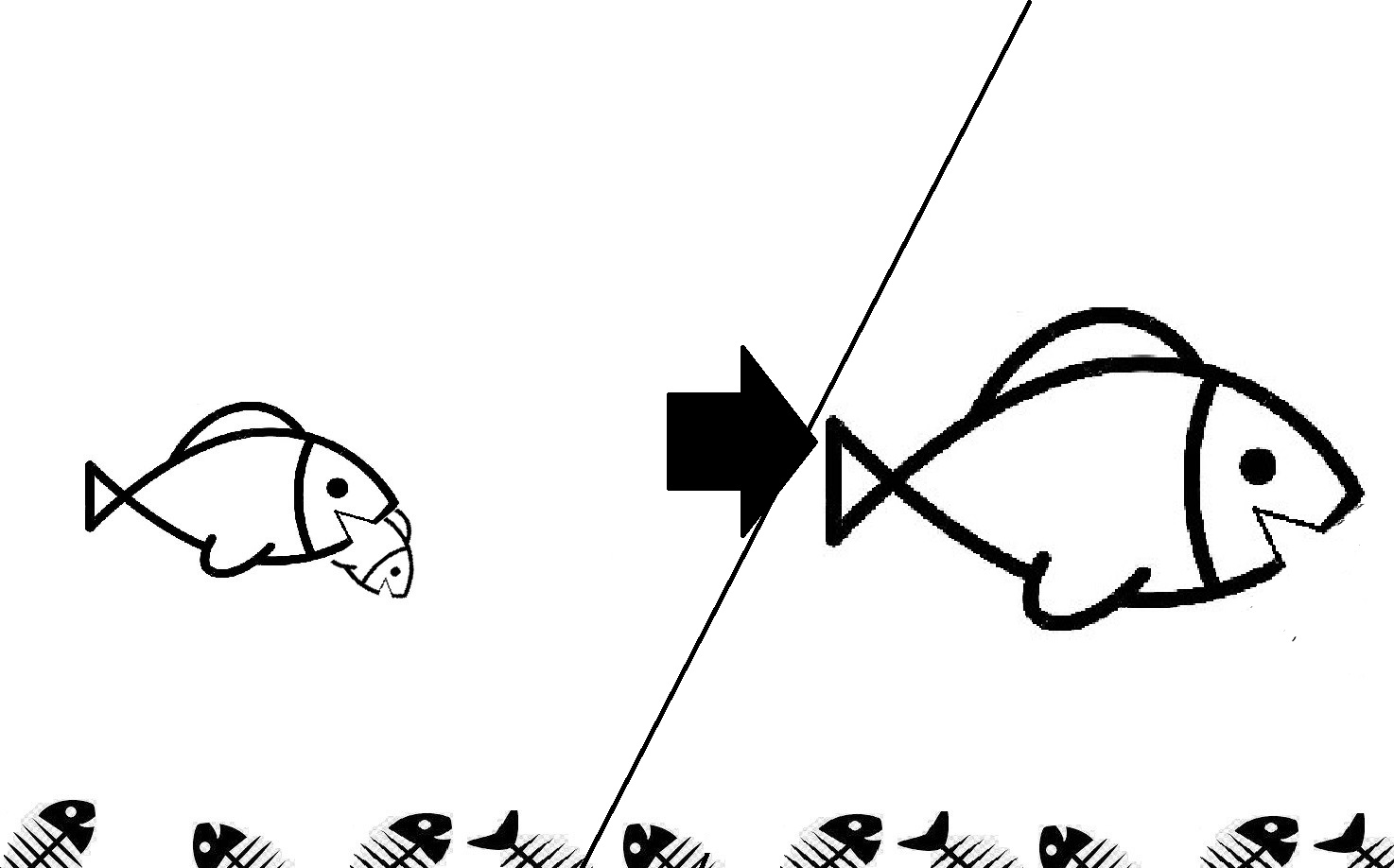 1) 핵심 규칙 - 죽을때까지 주인공 물고기보다 작은 물고기를 먹는다